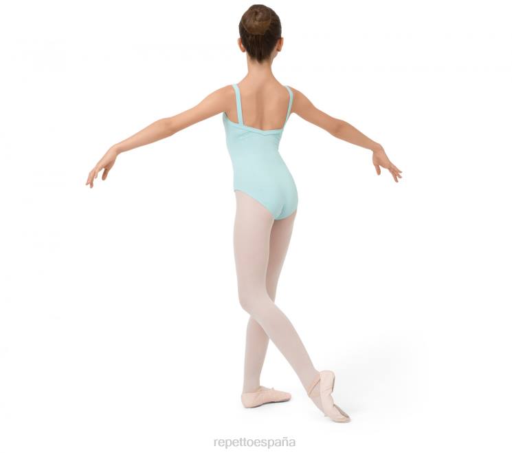 Maillot de niña con tirantes finos, con ribete de cuello ancho para un buen mantenimiento. El escote fruncido es ajustable con una pequeña cinta interior de raso. Las costuras princesa realzan las curvas de la bailarina. Disponible en talla de adulto y en muchos colores, es un producto ideal para las principales escuelas y clases de baile de conservatorios.